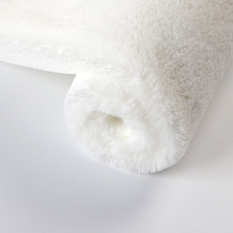 Nosso tecido de pele de coelho falso pesa 500gsm, fornecendo uma textura substancial e de pelúcia que aprimora o apelo estético e o conforto de qualquer espaço. Com uma altura de pilha de 8 mm, oferece uma superfície macia e desgrenhada que parece indulgente sob os pés. O tecido está disponível em larguras de 170, 190 e 210cm, ou personalizado para atender aos seus requisitos específicos.