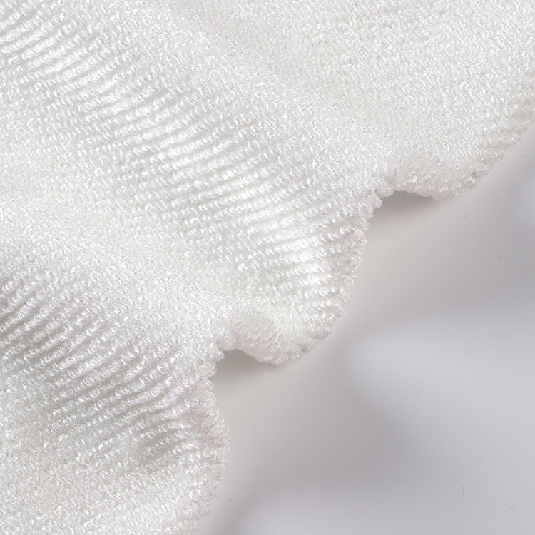 O tecido está disponível em larguras de 170, 190 e 210 cm, ou personalizado para atender às suas necessidades específicas. A altura da pilha varia de 2,5 a 3 mm, oferecendo uma textura macia e macia que é confortável e prática. Usamos uma técnica de malha para uma estrutura flexível e resiliente, tornando -a perfeita para várias aplicações.